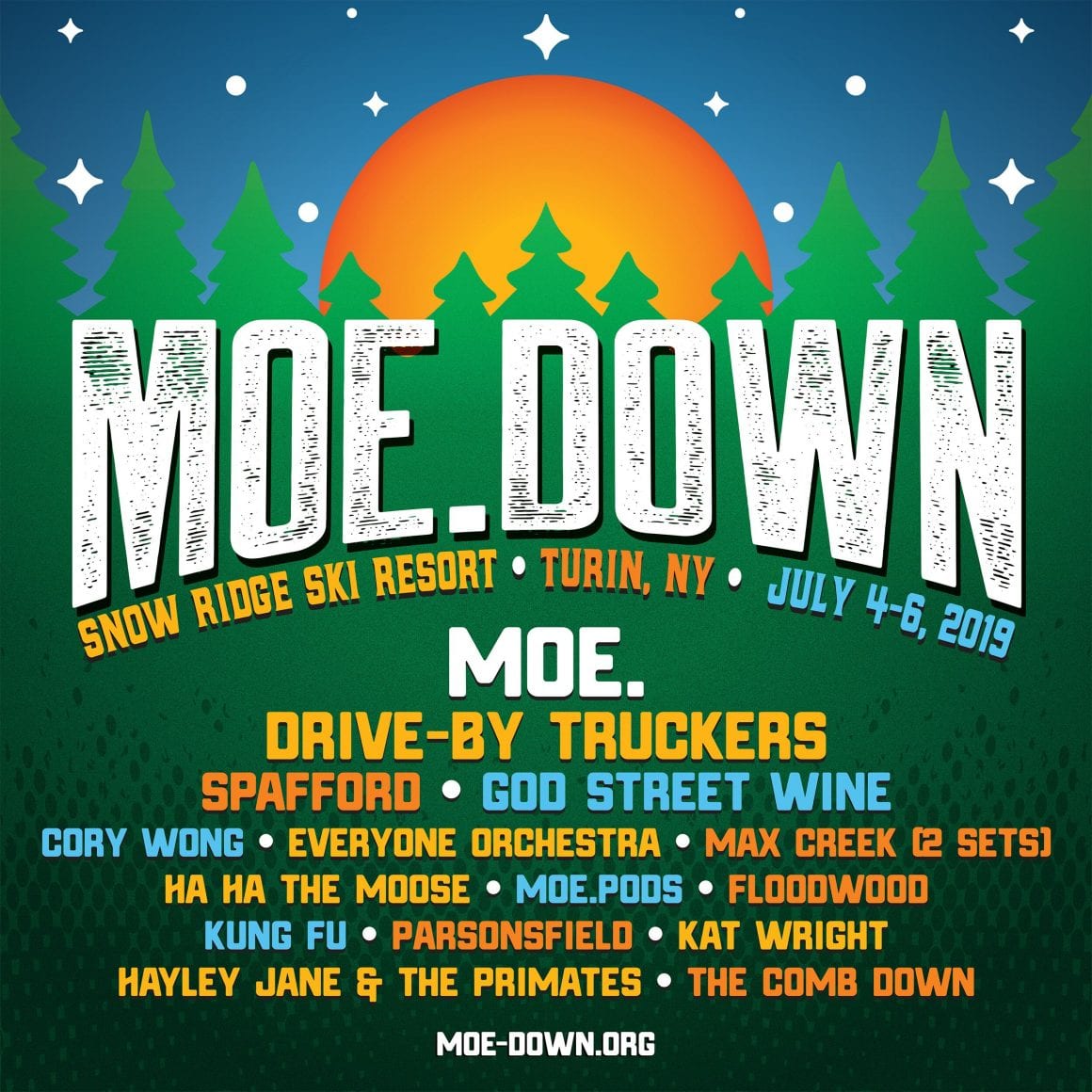 After a yearlong hiatus, moe.down is back with three nights of camping and seven sets of moe. This year’s lineup features Drive-By Truckers, Spafford, God Street Wine, Max Creek, Kung Fu, Everyone Orchestra, Hayley Jane and the Primates, and many more! In addition, a handful of moe. side projects will perform, such as Ha Ha The Moose, moe.pods and Floodwood.