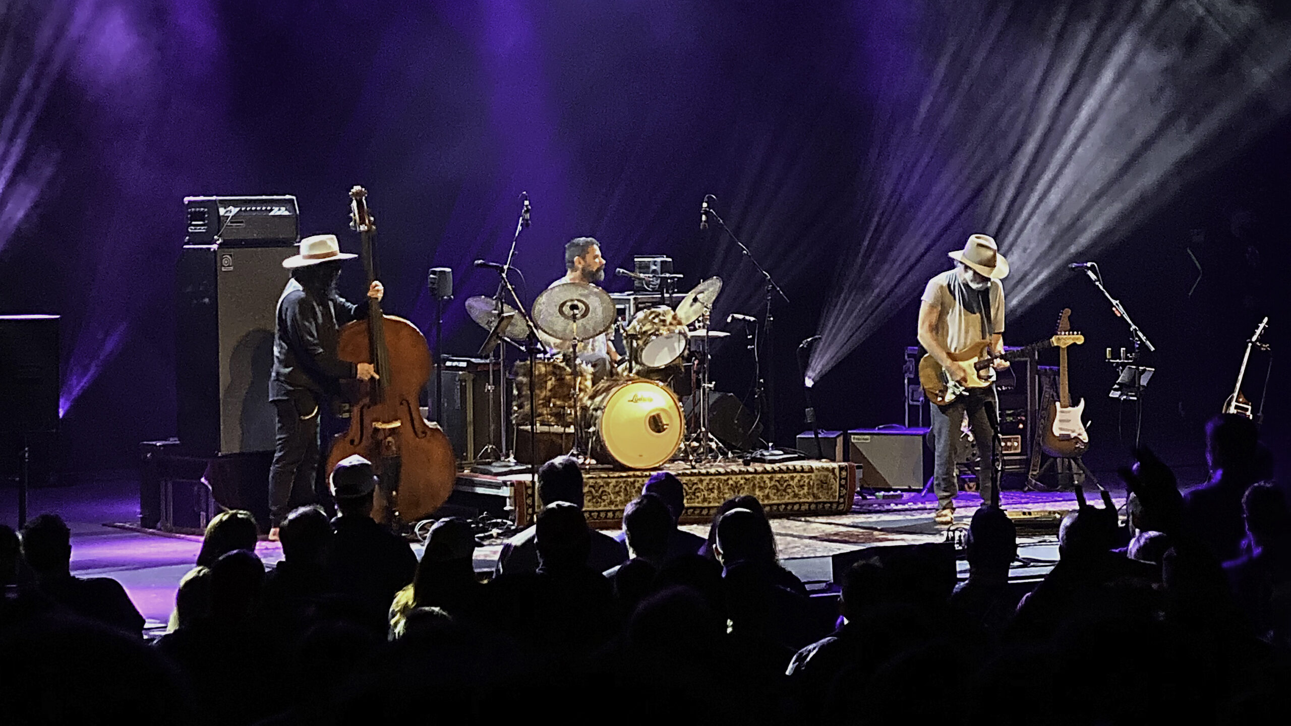 Providing a vigorous and energetic percussion, it was a joy to hear Jay Lane’s drums again, hearkening me back to the RatDog days. Lane’s vocals were a welcome addition, and the crowd cheered his drum-stick-wide, steal-your-face-right-off-your-head smile during “He’s Gone.” Likewise wearing a cowboy hat, bassist Don Was rounded out the sound, undergirding the groove, deepening and stretching it, plucking and strumming its bones. Throughout the night, the room reverberated with such a remarkably rich sound, I was often astounded to open my eyes and see only three musicians on the stage.