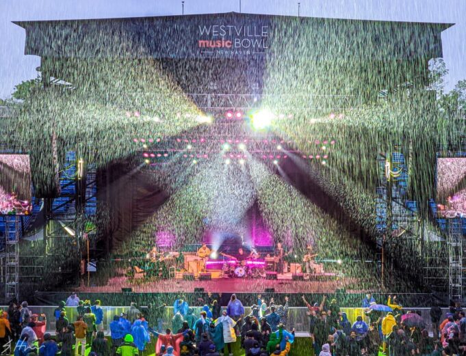 As temperatures dropped into the 50’s and the rain fell even more heavily upon our heads, the band launched into the first “Sugaree” they have performed in almost 80 shows (1/13/18 Capitol Theatre). As Tom Hamilton, donned in his usual scarf and beanie, peered through the rain and stage lights to deliver a personal message to the crowd. As he sang, “Still have to stand out in the pouring rain,” the crowd went insane with cheer and applause, throwing their hands toward the weeping sky.