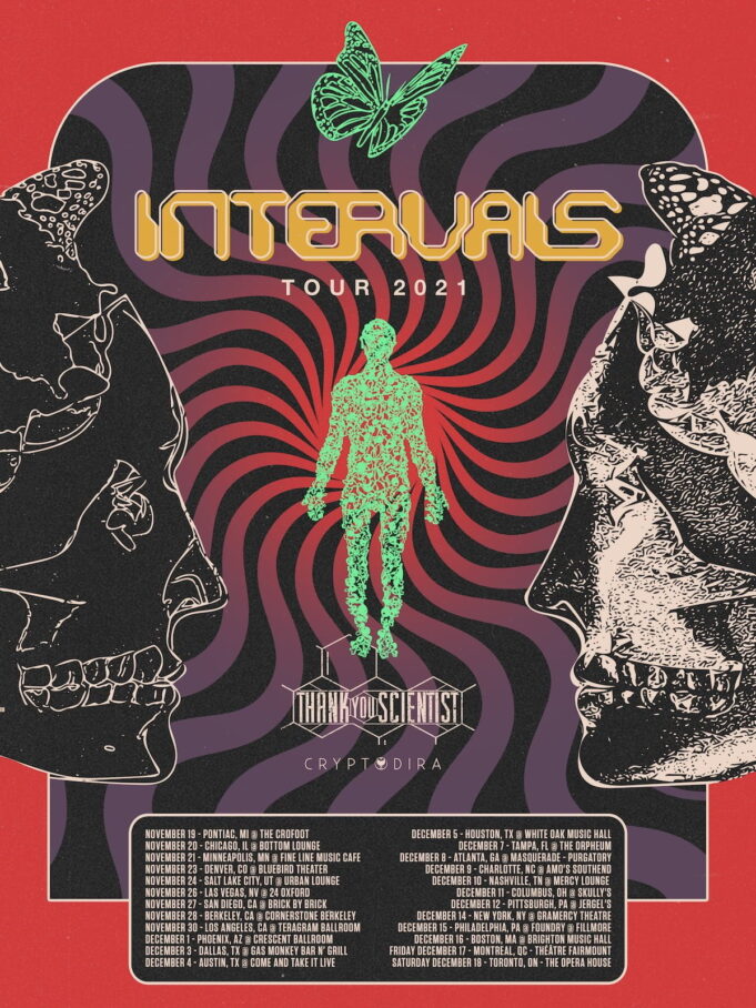 Following the release of the critically acclaimed fourth album Circadian, progressive rock innovators Intervals have announced a North American tour this fall. Kicking off November 19th in Pontiac, MI, the run will find the band performing songs from the album for the first time in a live setting. Support for the tour comes from eclectic prog-rock band Thank You Scientist and prog-metal fusion band Cryptodira. All dates are listed below and tickets can be purchased starting July 23rd at 10am local time via intervals.store.