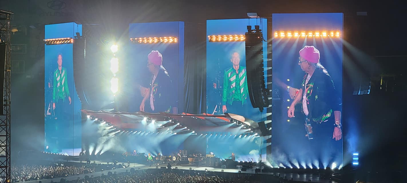The set list included Street Fighting Man and Get Off of My Cloud. Apparently Jagger can control the weather as the rain stayed away, not that anything could have dampened the brightness of the music. They went on to play Sad, Sad, Sad from Steel Wheels, Tumbling Dice, Beast of Burden and Far Away Eyes. It was the first time that Far Away Eyes had been played since 2015. Then they played one of my Personal Favorites, You Can’t Always Get What You Want. While a favorite Rolling Stones song I always think of Max Creek covering it. Give it a listen if you haven’t heard it. The show continued with Living in a Ghost Town, Start Me Up, and Honkey Tonk Woman.