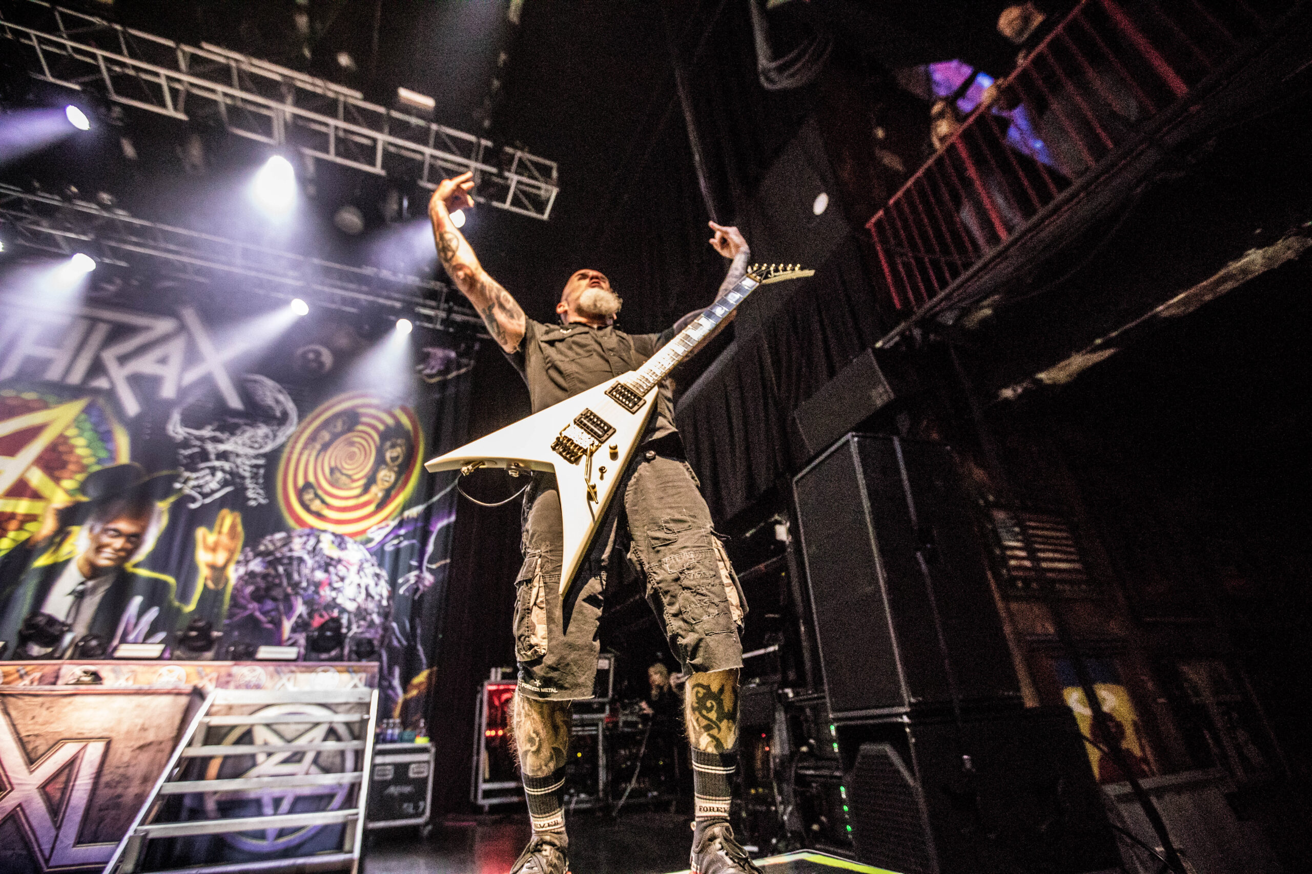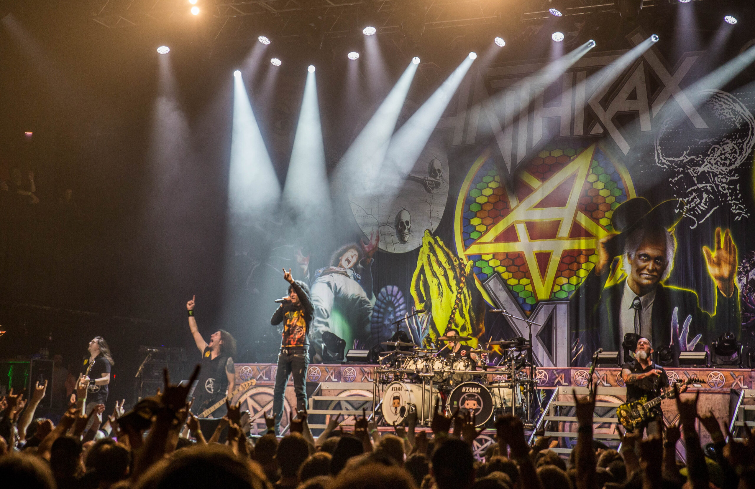 The 40th anniversary tour featured Belladonna and the band’s classic lineup whose members have all been playing together since 2013. The current band members are Jonathan Donais (guitar), founding members Scott Ian (guitar) and Charlie Benante (drums), as well as longtime members Frank Bello (bass) and Joey Belladonna (vocals). The final leg of the US tour included two bands along for the ride, supporting 80’s California thrash pioneers Exodus and former lead guitarist for Ozzy Ozbourne Zakk Wylde with his heavy groove metal band Black Label Society.