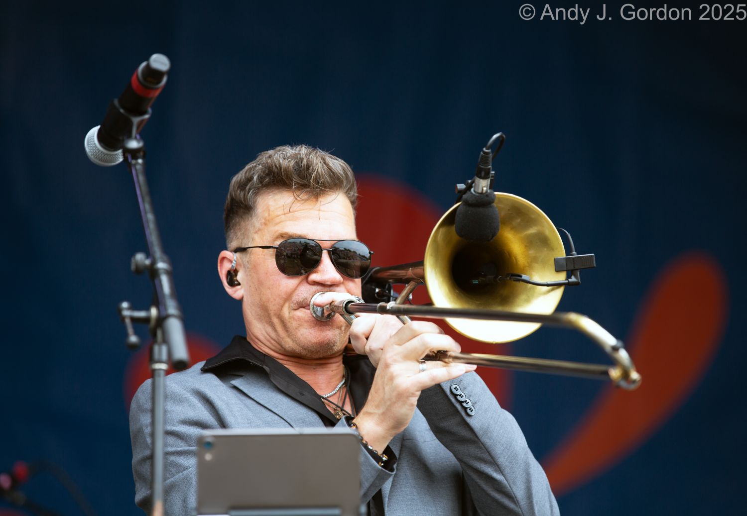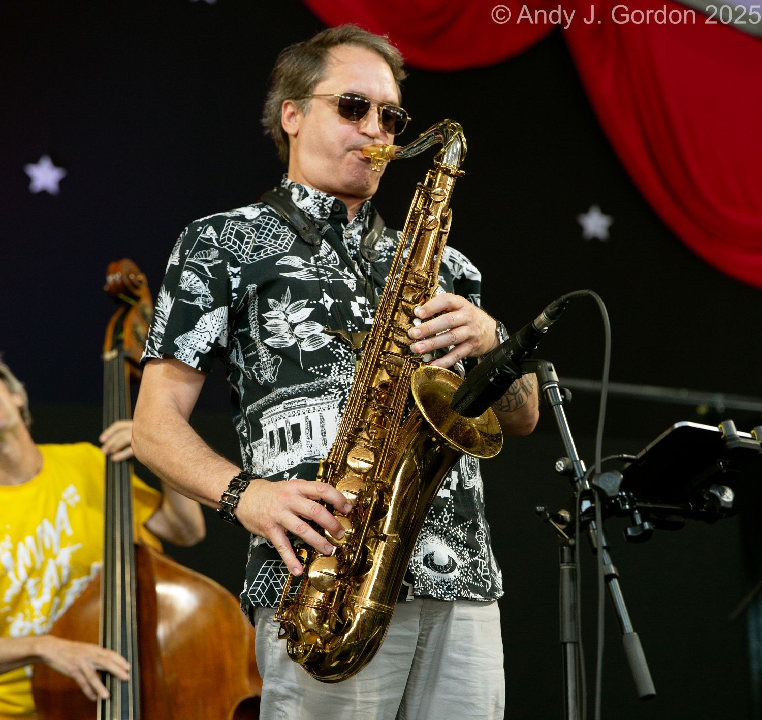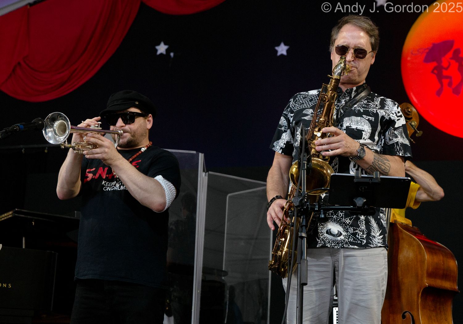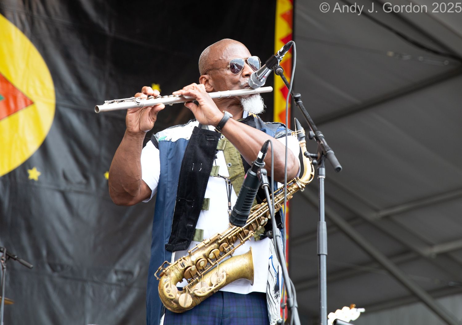 - Karl Denson is no stranger to big crowds, having played saxophone for the Rolling Stones for the over a decade including during Jazz Fest last year. His band, Karl Denson’s Tiny Universe, did a fun, booty shaking mid-afternoon set of funk and soul on the Congo stage. Kermit Ruffins is a brilliant trumpet player and entertainer who has been a mainstay on New Orleans stages for decades. His outstanding band performed a lively set of New Orleans standards and originals on the Gentilly stage. Nothing compares to the unique horn ensemble known as Midnite Disturbers. The collective of fourteen plus horn masters only play at Jazz Fest because each member is busy with their primary, year-round bands. They played a set at the Jazz & Heritage stage with each trumpet, trombone, saxophone and sousaphone player participating in amazing arrangements and blasting featured solos.