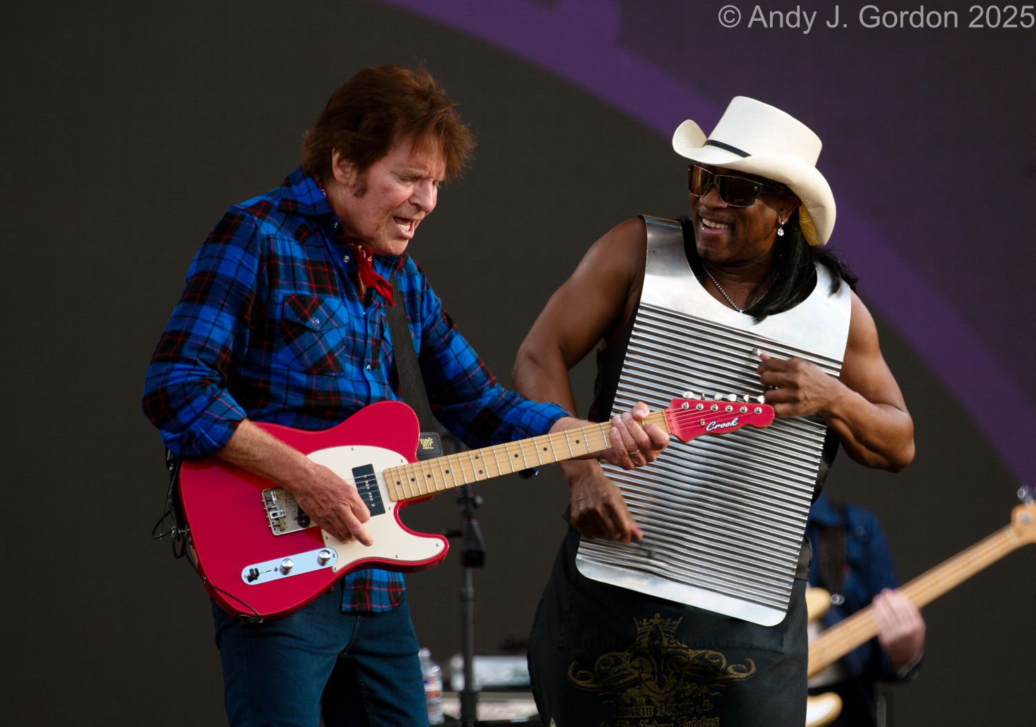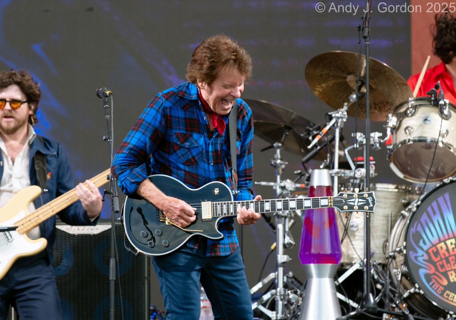 - John Fogerty will turn 80 in May. On a hot Jazz Fest day on the Festival stage, Fogerty wore jeans and a flannel shirt, but showed as much or more energy as his two sons who are in his band. Fogerty still has the vocal and guitar chops that made the Credence Clearwater Revival catalog of songs such a big part of pop radio since the late 1960s. Fogerty recently won back the rights to his CCR hits and he seemed reenergized as he played several including “Have You Ever Seen the Rain?” and “Down on the Corner.” During “Old Man Down the Road,” Fogerty and his son Shane traded guitar riffs back and forth. After a zydeco interlude with surprise guest Rockin’ Dopsie Jr., Fogerty closed the set with additional classics “Fortunate Son,” “Travelin’ Band” and “Proud Mary.”