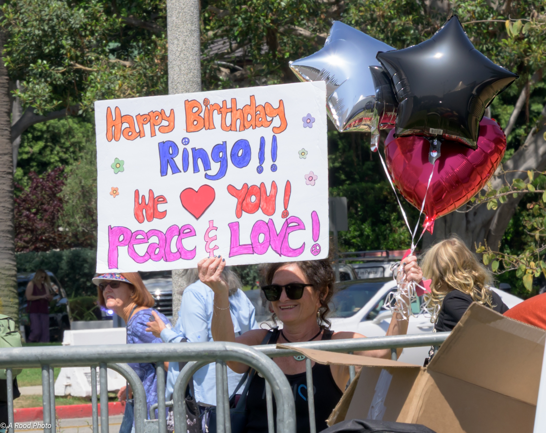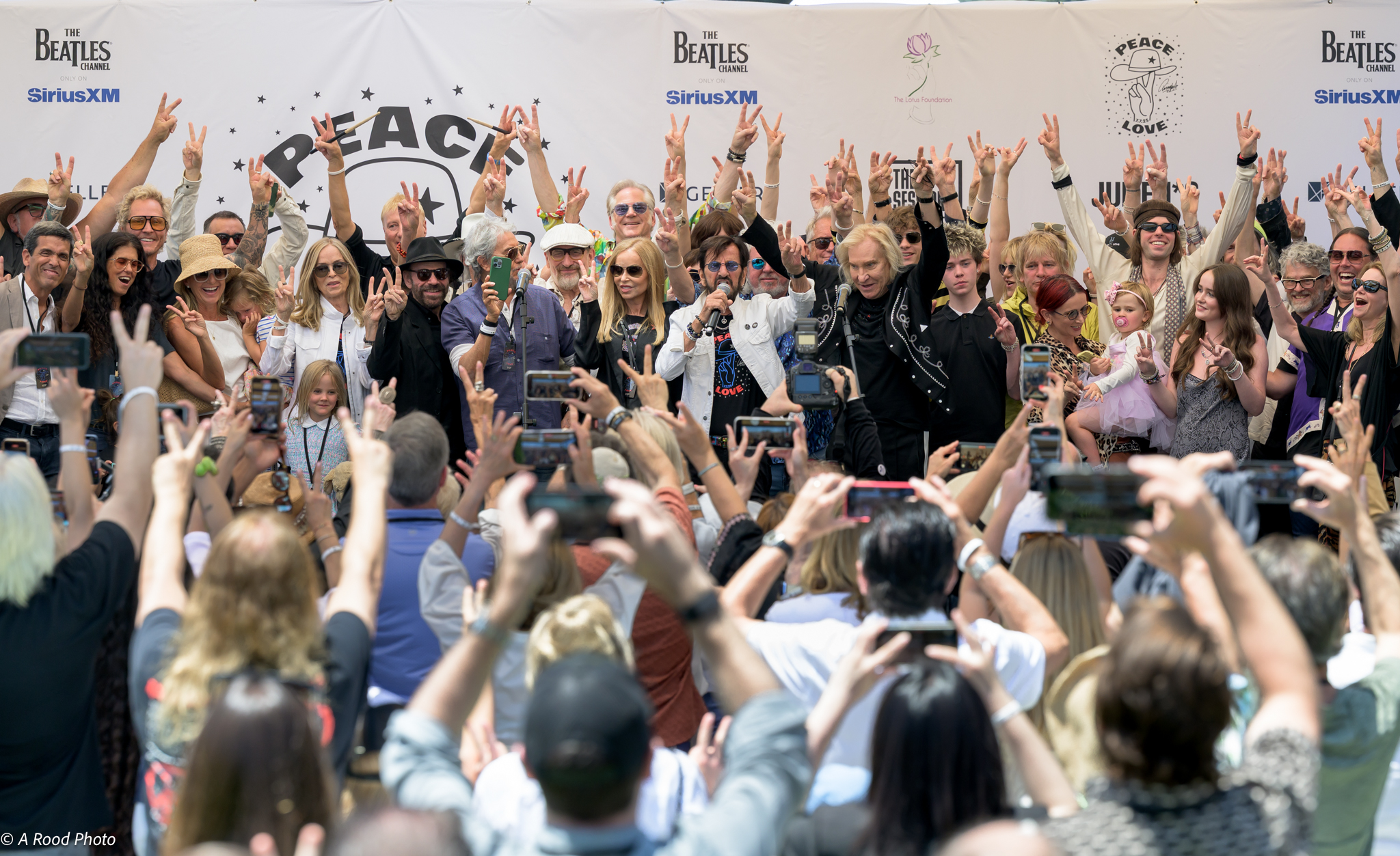 Alongside the bustling morning traffic on Santa Monica Boulevard the crowd built in size and energetic momentum for Ringo’s 85th birthday and eighteenth Peace & Love birthday celebration.
