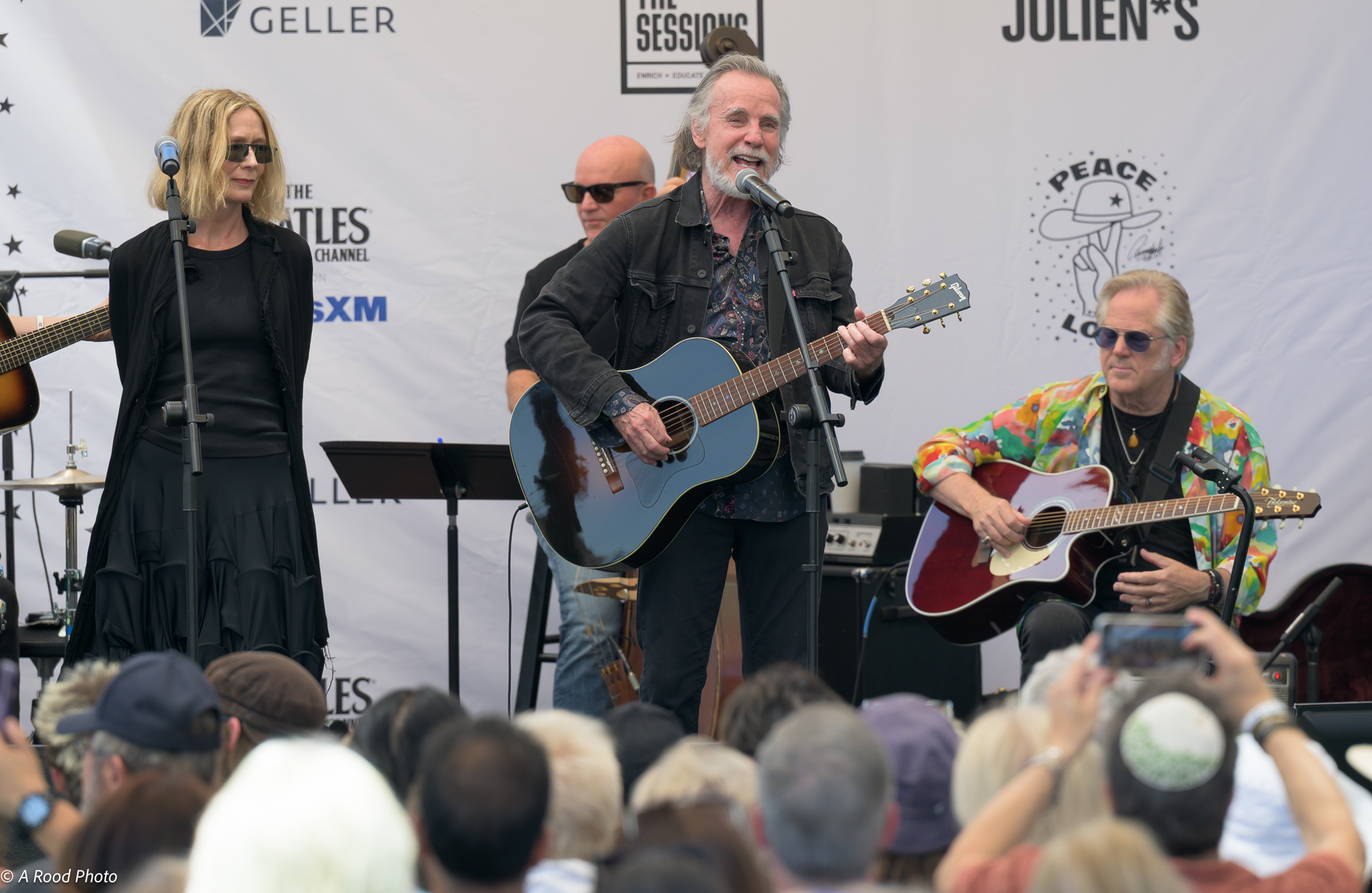 Prior to Ringo’s arrival, the performers’ soundcheck wafted through the verdant and sunny Beverly Hills Garden Park, where Ringo’s “Peace and Love” sculpture resides.