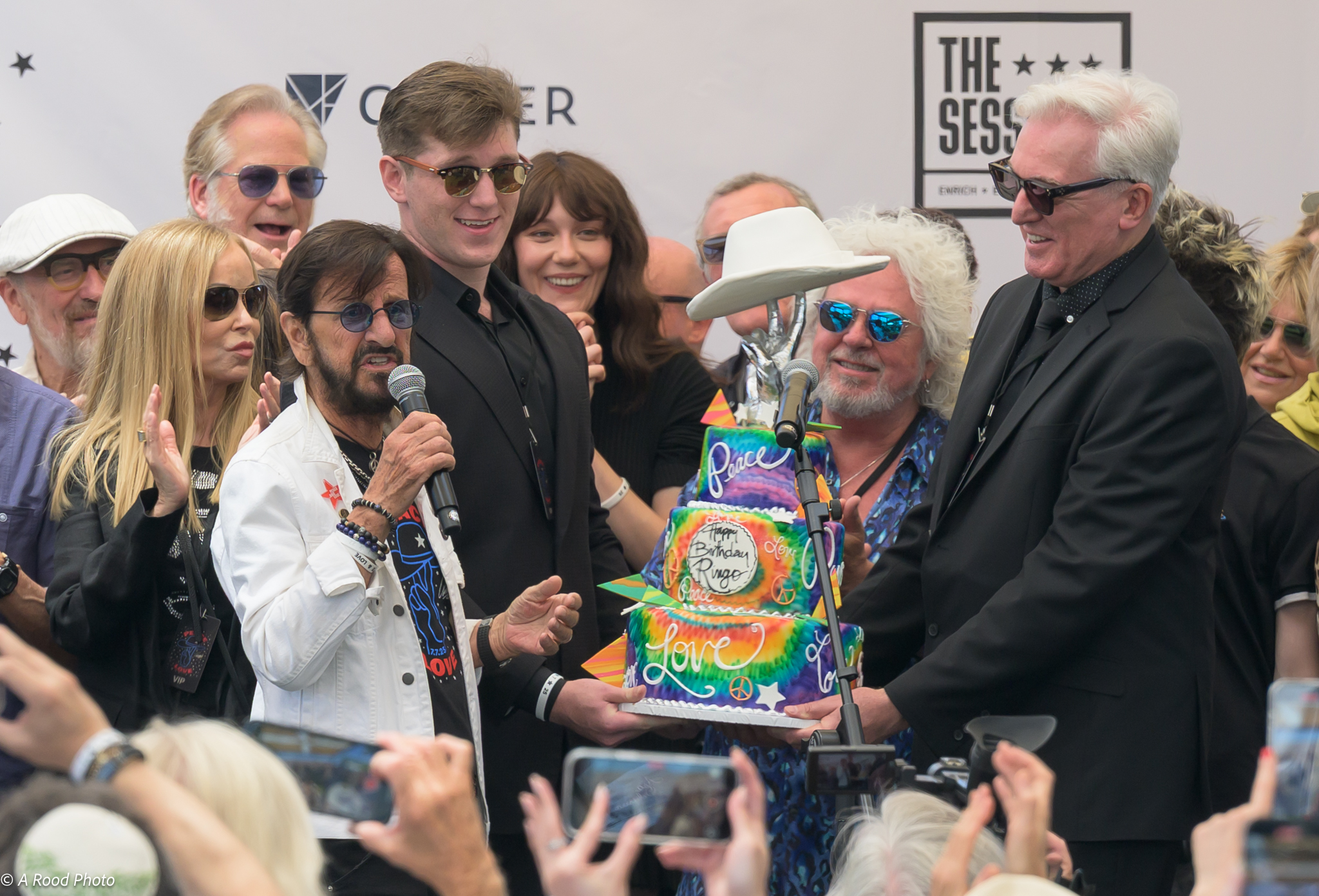 The always punctual Ringo arrived with plenty of time before his birthday wish of a worldwide “peace & love” moment at noon to generously pose for everyone’s pictures and videos and to graciously give each reporter and outlet an opportunity for individual questions.