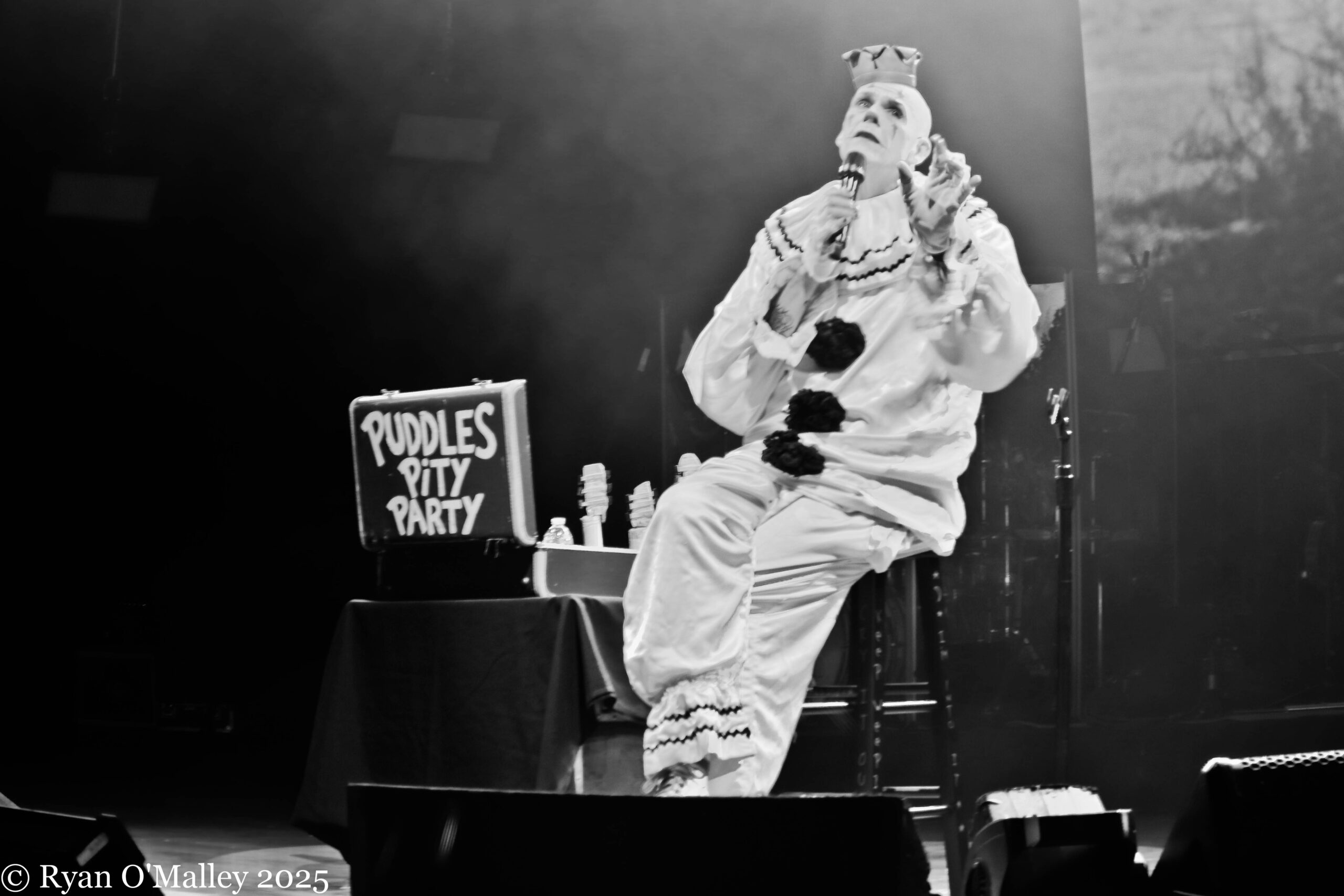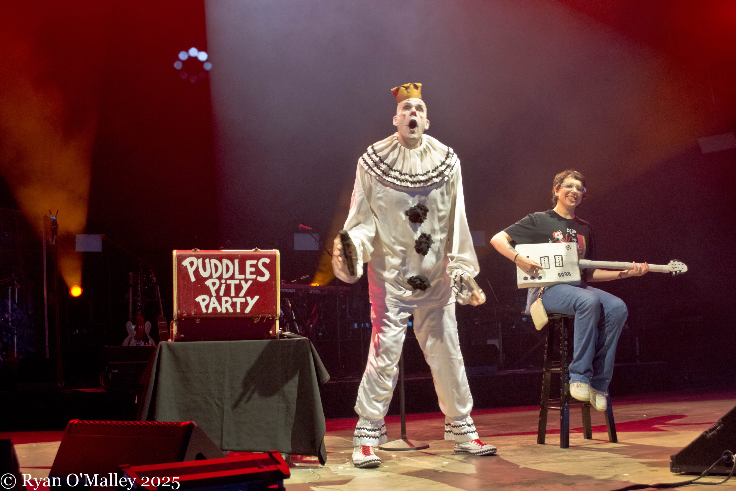 Prior to Yankovic’s set, Mike Geier performed a 30 minute set as his alter ego, Puddles Pity Party. Puddles has a very unique and recognizable baritone voice and when mixed in with his sad persona on stage it makes for an enjoyable experience. Set highlights included bringing up a fan to strum a cardboard guitar while he sang “Crazy Train” by Ozzy Osbourne, a perfectly executed mash-up of “Stairway to Heaven” and the theme song to “Gilligan’s Island,” and a powerful version of “My Heart Will Go On” by Celine Dion were random shots of actor Kevin Costner appeared on the video screen.