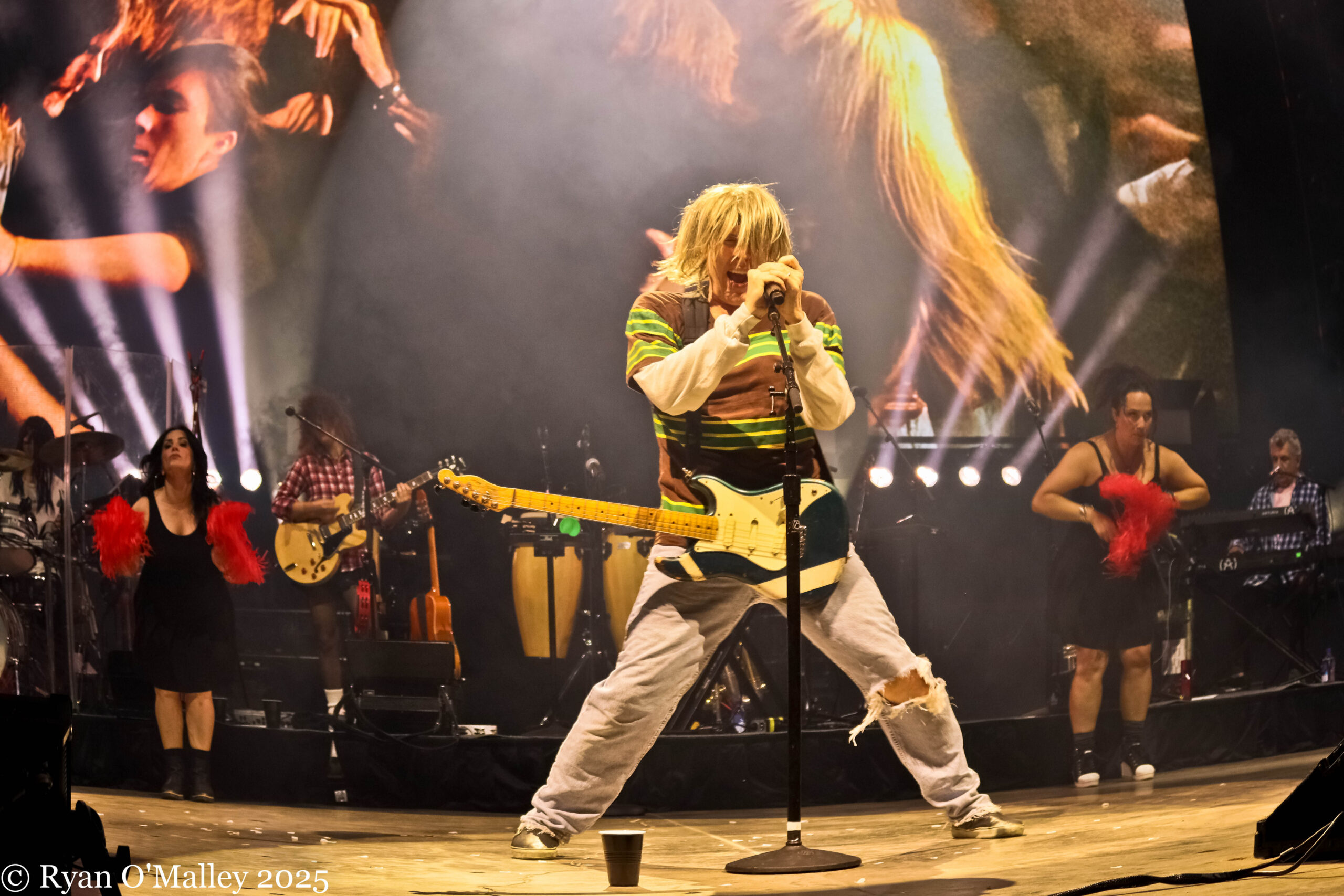 Another style parody occurred with “Everything You Know Is Wrong,” which parodied the overall sound of They Might Be Giants. One of the most enjoyable parts of a Weird Al show is the nonstop barrage of costume changes which accompany mostly every song. In order to accomplish these changeovers, a video screen would show snippets of Yankovic superimposing himself into famous video interviews, or cut away scenes from his feature film “UHF,” or scenes from his old AL-TV show on MTV. Coming out on stage in a blonde wig and dressed in flannel and jeans only meant one thing, it was time to pay tribute to Nirvana with appropriately titled “Smells Like Nirvana,” a song which late Nirvana front man Kurt Cobain loved due to Yankovic’s parody being about most people not being able to understand Cobain’s vocals.