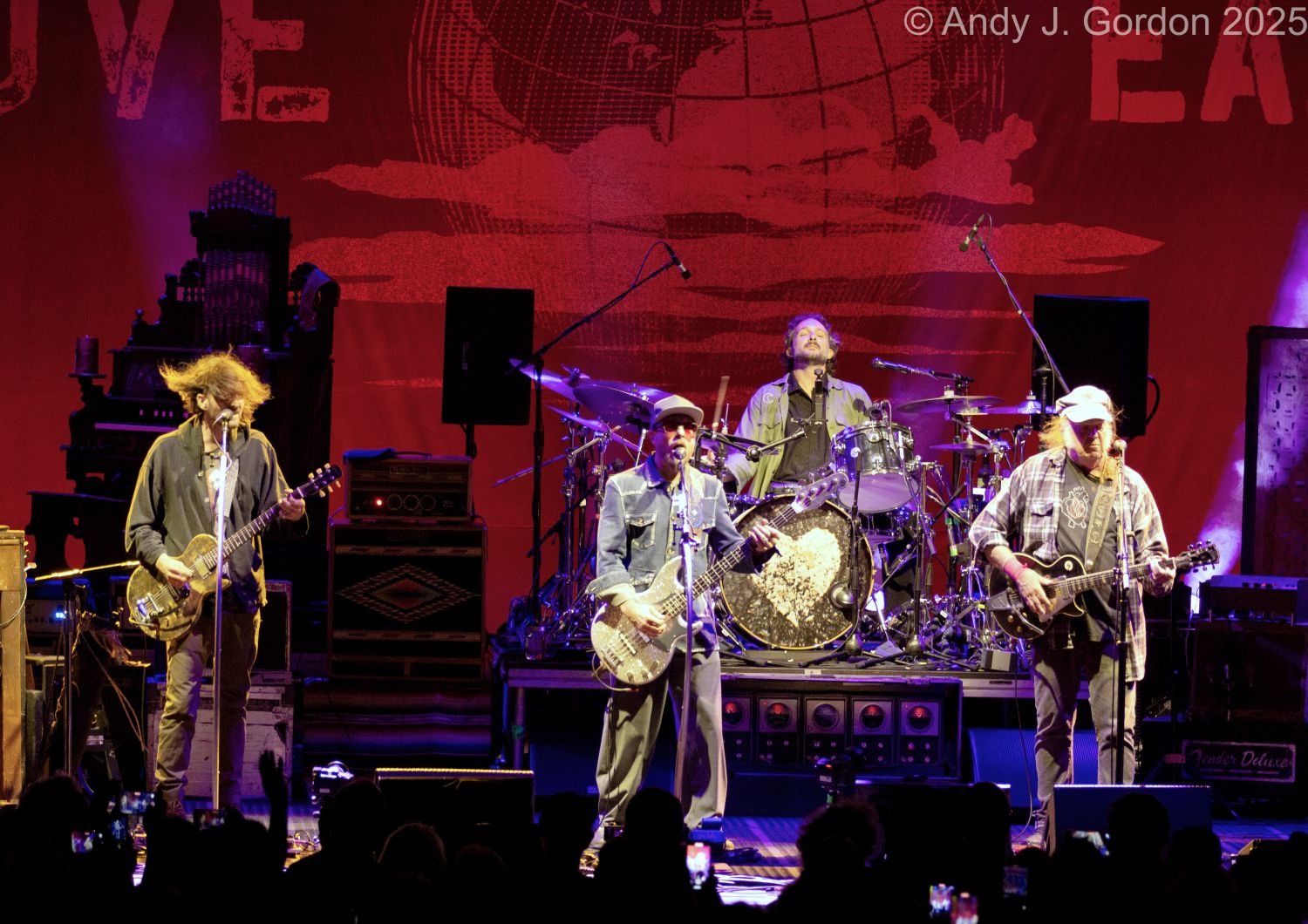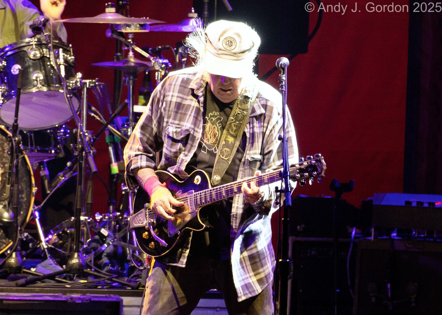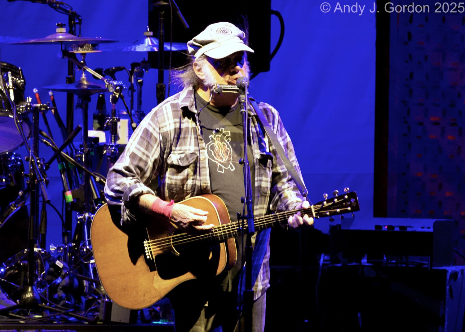 Neil Young returned to the Hollywood Bowl in southern California on Monday September 15, 2025 with his new backing band, The Chrome Hearts for the last stop on their Love Earth tour. A sold-out crowd enjoyed a mixed bag of classics, deep tracks and a few newer songs as Young did a masterful job of juxtaposing slower, acoustic, countrified folk tunes with electric, fuzzy, distorted high tempo tracks.
