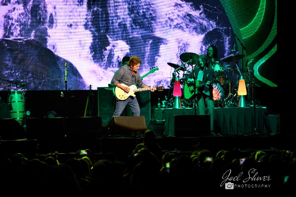 “Born on the Bayou” followed, tremolo guitar pulsing while the lights sank into deep greens and purples. Fogerty leaned into every line like he was right there on some humid Louisiana back road, turning a Connecticut casino into a Southern fever dream.