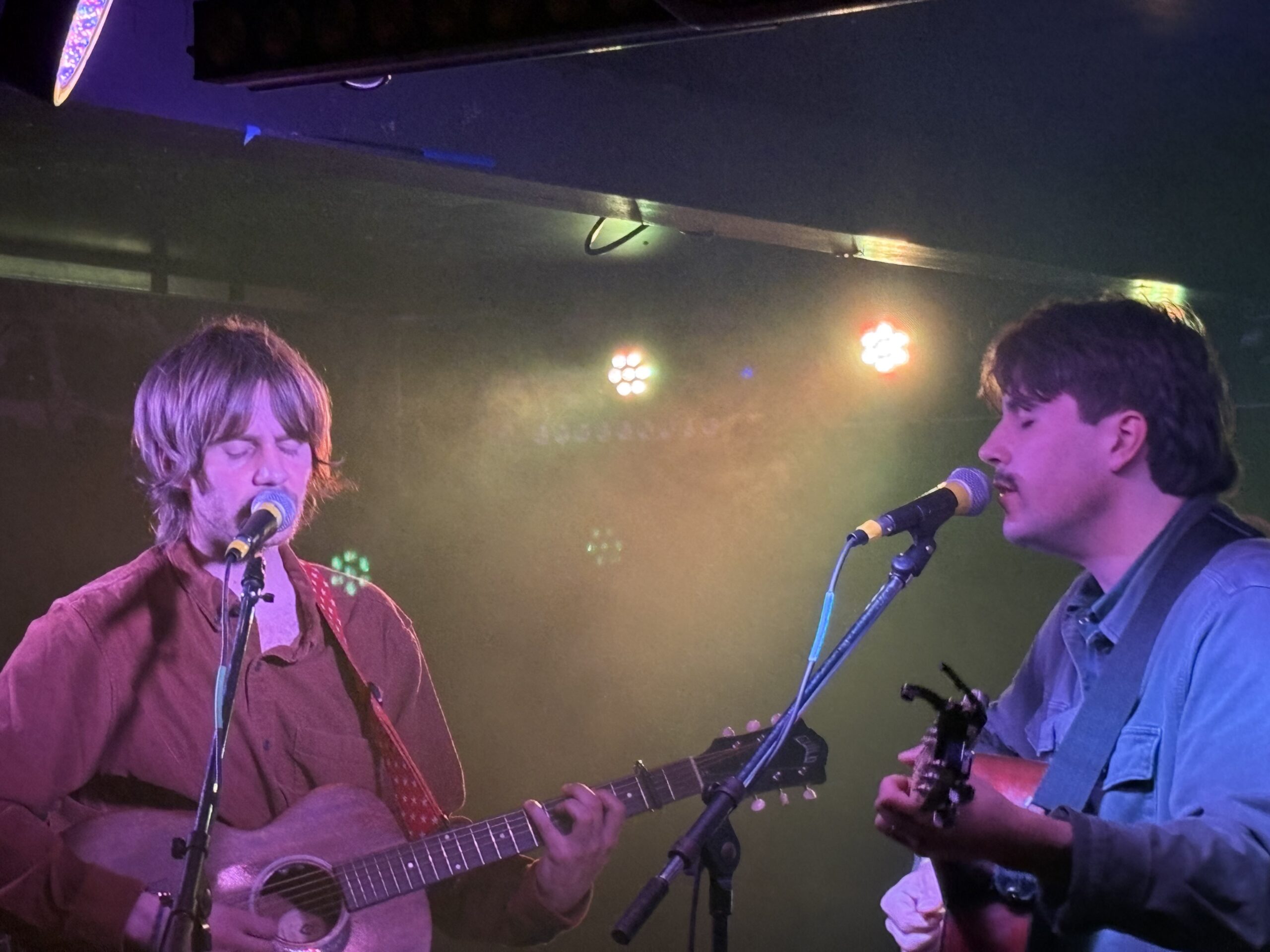 Following Hise was Dogwood Tales, only two members, Ben Ryan and Kyle Grim performed, but still filled the room with their performance. The duo played some of their softer music, letting their tender voices blend while their guitar playing moved in tandem underneath. They set the tone from the start, with “Living in a Shadow” from their 2018 album Too Hard to Tell, which brought a relaxed vibe to the room. Their set included songs from all over their discography, including some that were unreleased. They jumped to “Driver’s Side Fantasy” from their 2024 EP, sending. My favorite had to be “Spiritless Machine, another song from Too Hard to Tell. The way the duo spun the guitar playing between the two was effortless; not once did it feel like two separate instruments vying for dominance. One of their unreleased songs they performed was titled “7x Over,” the title coming from one of the member’s grandmother who misremembered the bible quote for Matthew 18:22; thinking it was seven times over instead of seventy-seven. Regardless, the song was emotional and just so very beautiful. A phenomenal performance all around from Ryan and Grim.